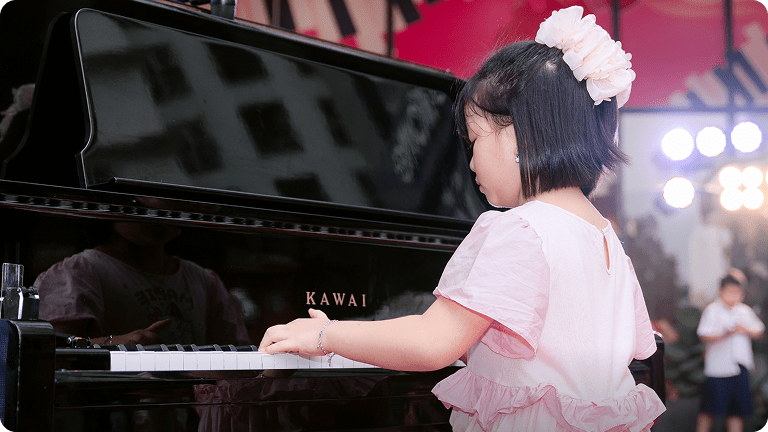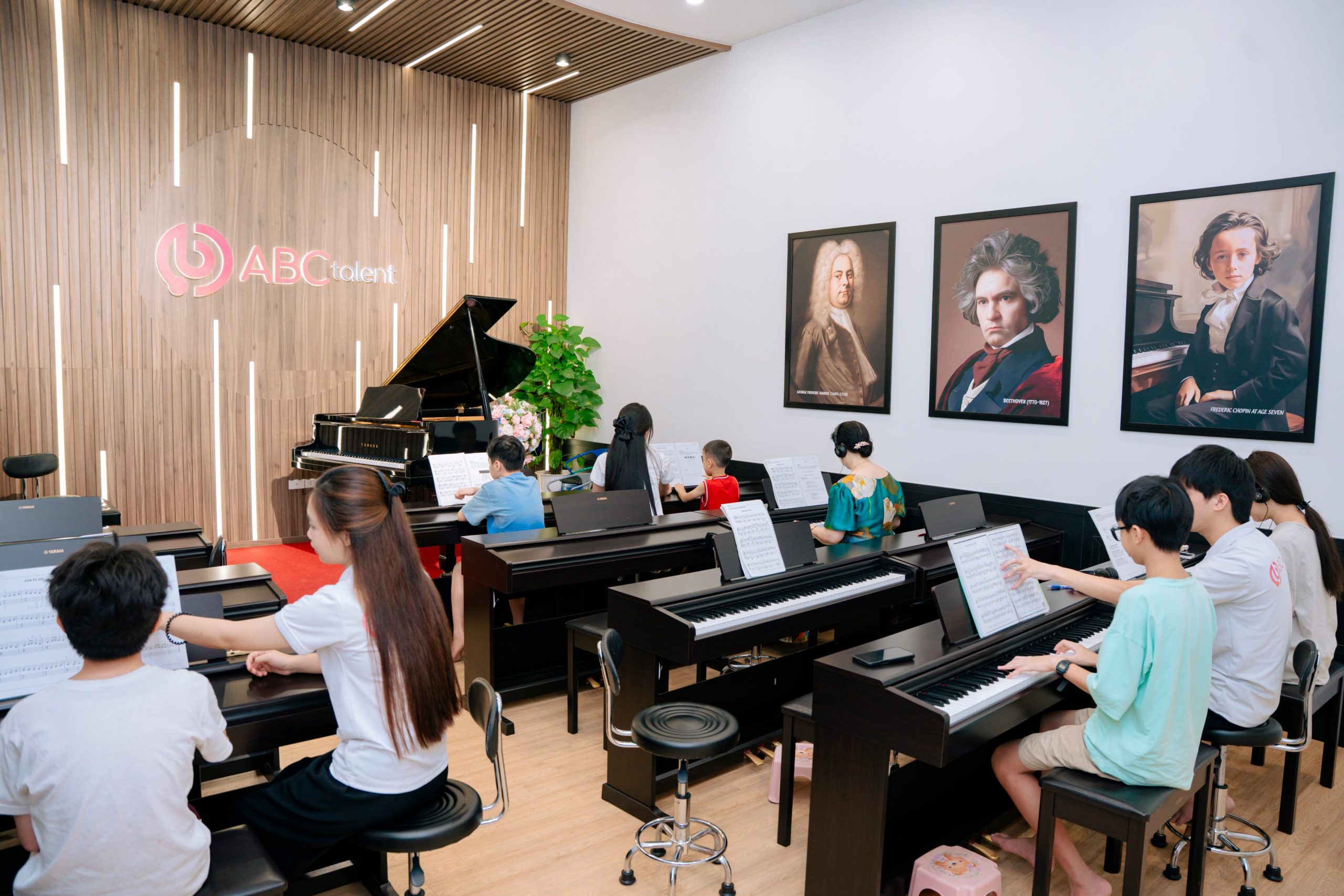 Các phòng học được cách âm chuẩn, trang bị đàn Piano chất lượng cao và nội thất tối giản giúp trẻ dễ tập trung. Khu vực chờ sạch sẽ, thân thiện, là nơi phụ huynh có thể thư giãn trong khi con học.